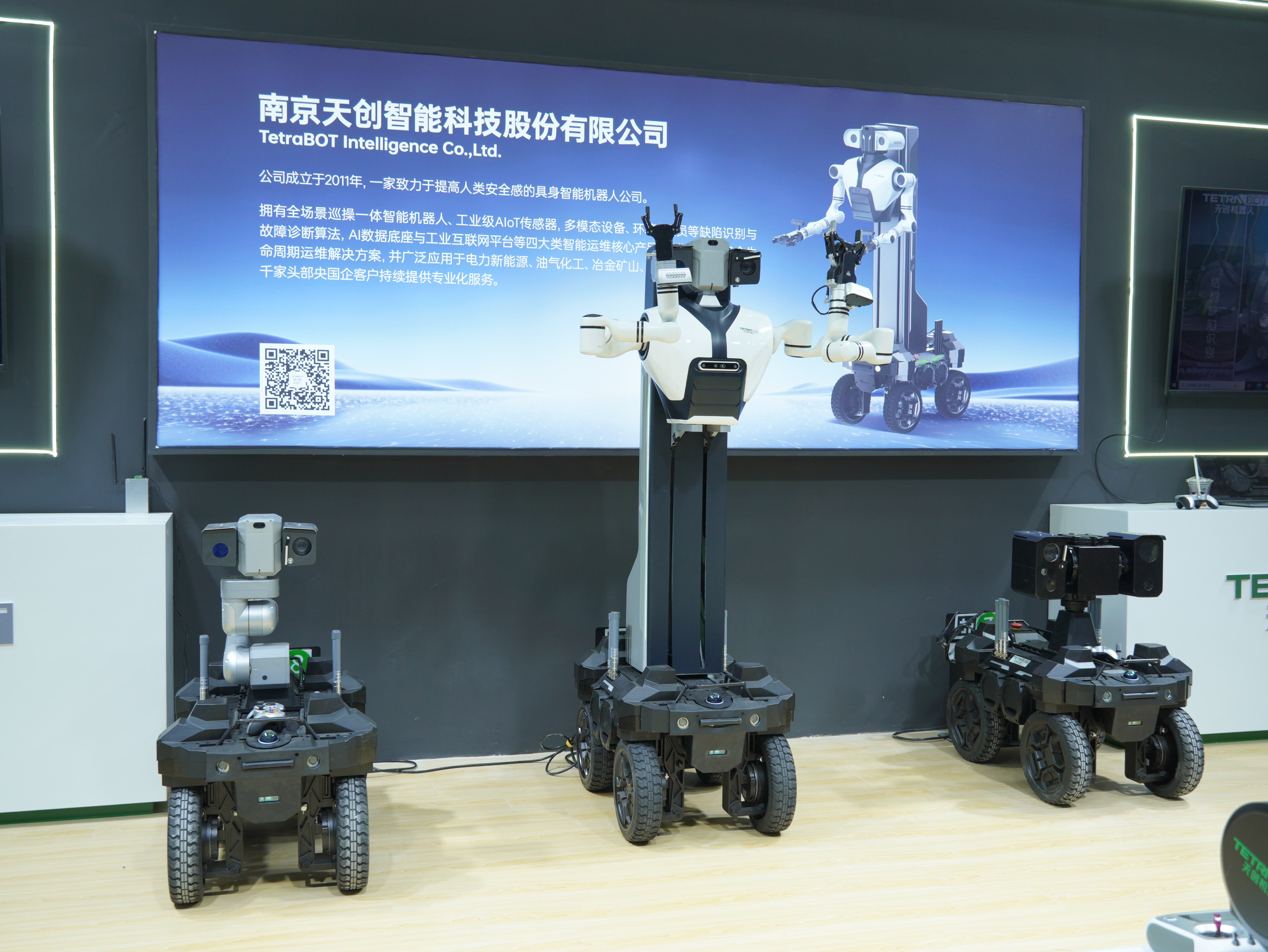 11月27-29日,第十届世界智能制造大会在南京国际博览中心隆重启幕。在这场代表行业前沿的盛会上,作为致力于提高人类安全感的具身智能机器人国家级专精特新“小巨人”公司,天创机器人应江苏省工信厅邀请携全球首款防爆人形机器人天魁、T12巡操一体人形机器人以及多款智能巡检轮式机器人、挂轨式机器人、移动充电机器人向业界全方位展示了公司软硬一体化、全栈式智能运维解决方案。